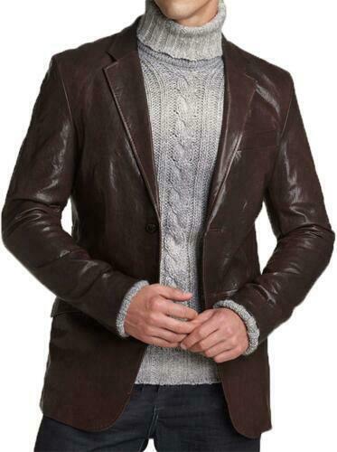 Enhance your sharp look with this Brown Slim Fit Leather Blazer featuring double-button closure and sleek tailored silhouette. Constructed from real lambskin leather and lined with polyester, this blazer offers effortless style for business meetings, evening events, or upscale casual occasions.