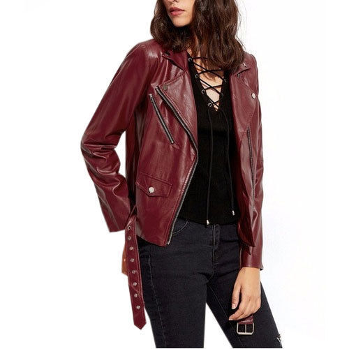 Unleash your bold side with the Women Bike Rider Maroon Leather Jacket – a stunning blend of biker toughness and feminine allure. The rich maroon hue adds a touch of sophistication, while the fitted cut and premium leather finish deliver effortless confidence and timeless style.